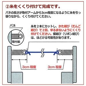 丈夫な糸を両端のバネで取り付けていますので、ゆるんだり切れたりすることがありません。布団を干したい時は、アームを下に下げるだけでOK!いちいち取り外す必要はありません。丸型や角型の鉄・アルミ製の手すりに取付OK。ベランダ上部だけでなく、手すり下部など、ハトやカラスの来そうな場所に併用すると効果大。